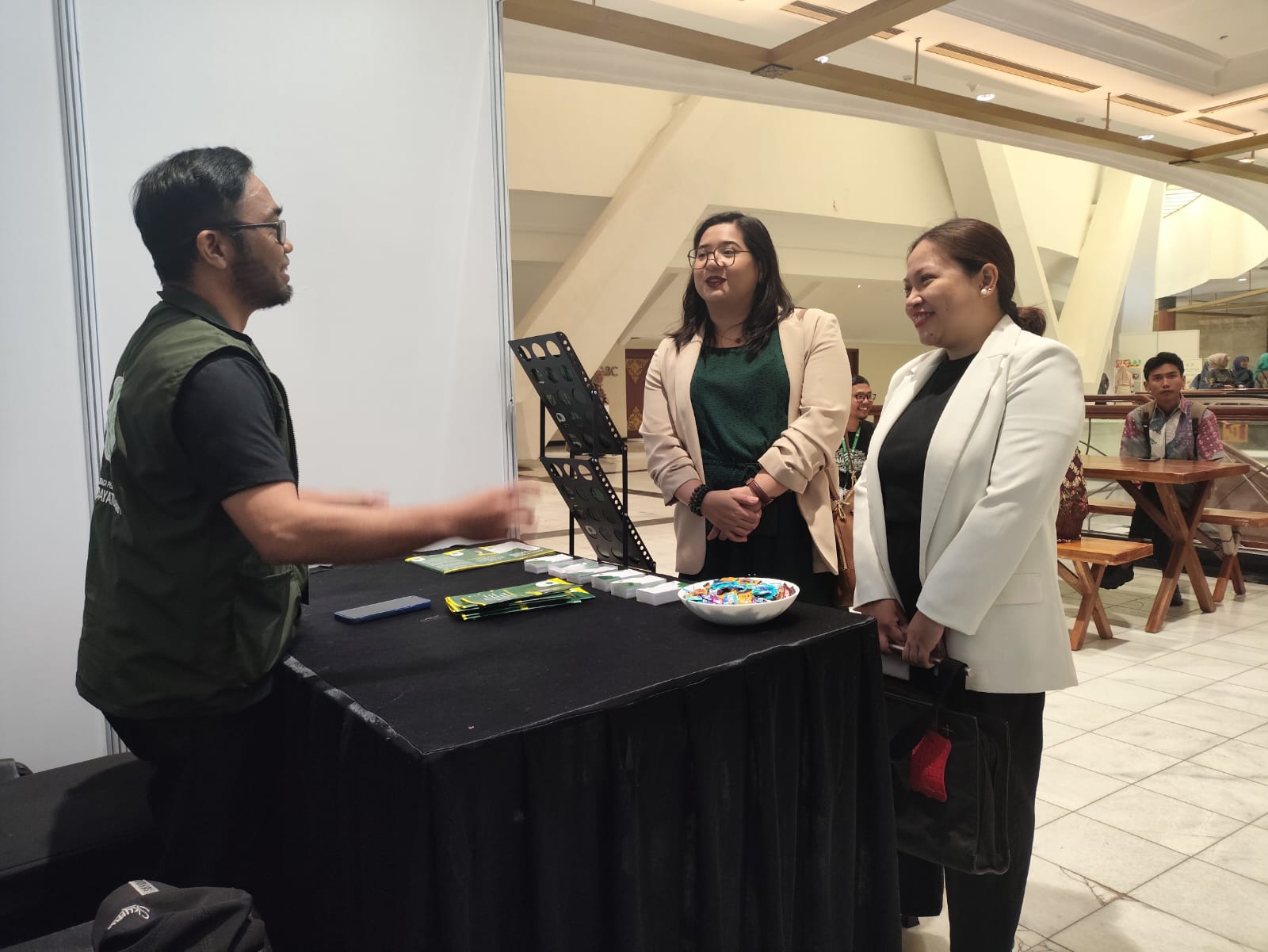 Pengunjung dari Filipina sedang konsultasi perihal halal kepada tim LPH Hidayatullah